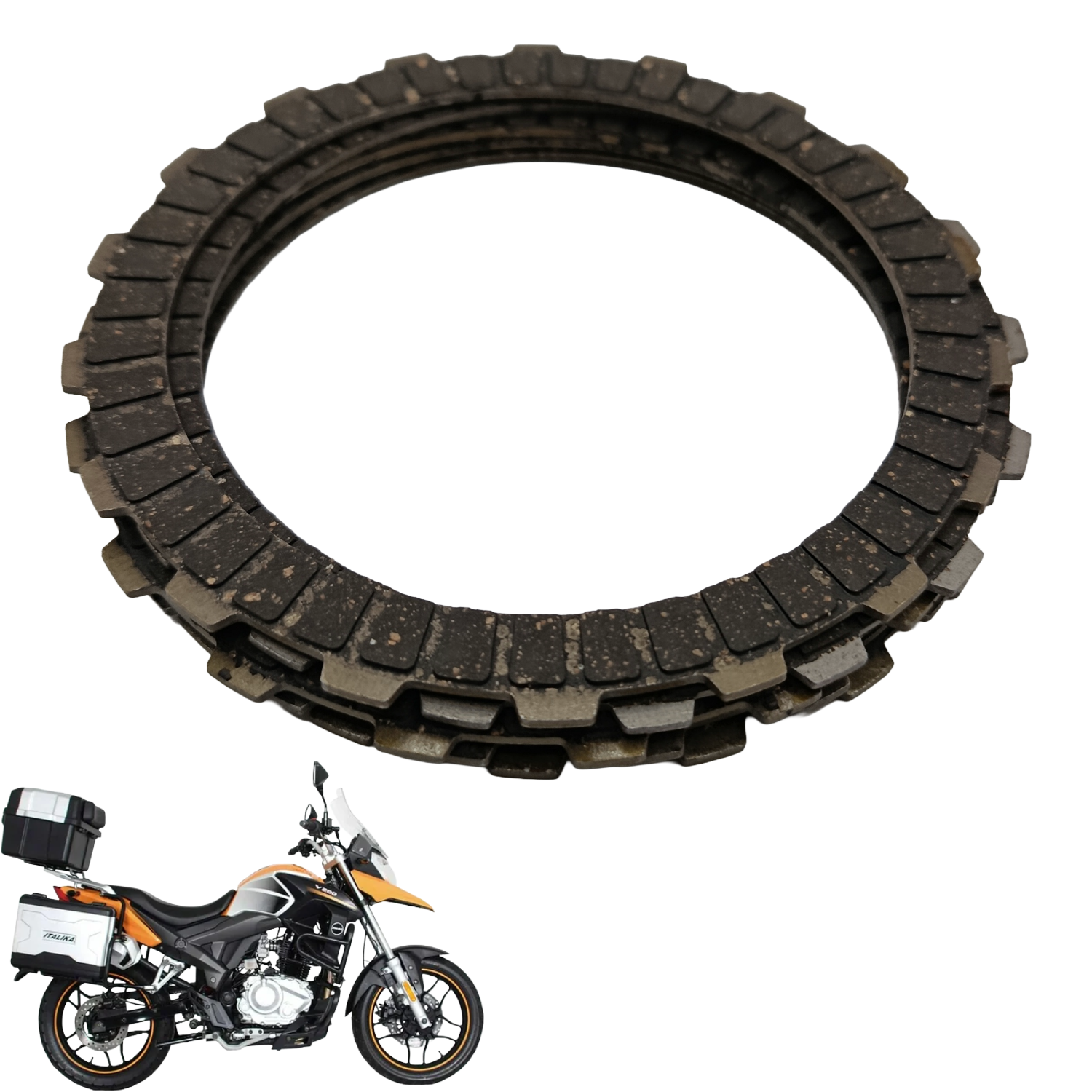 Mantén el rendimiento óptimo de tu Italika V200 con este juego de discos de fricción de embrague de alta calidad. Diseñados para ofrecer una respuesta suave, potente y duradera, ideales tanto para uso diario como deportivo.