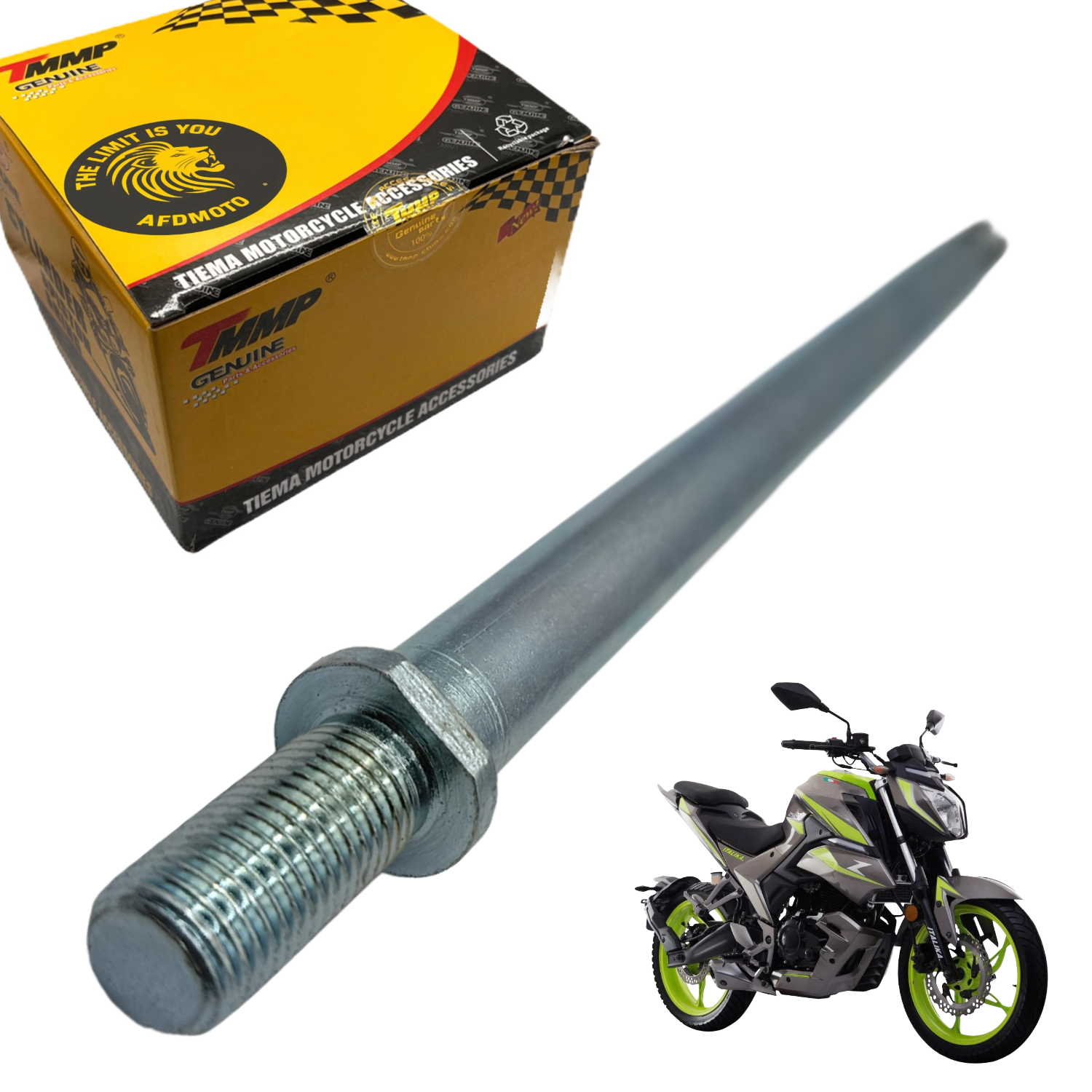 Eje de horquilla trasera diseñado para ofrecer un ajuste preciso y seguro en motos Italika 250Z modelos 2019 a 2025. Ideal para reemplazo por desgaste, daño o mantenimiento del sistema de suspensión trasera.