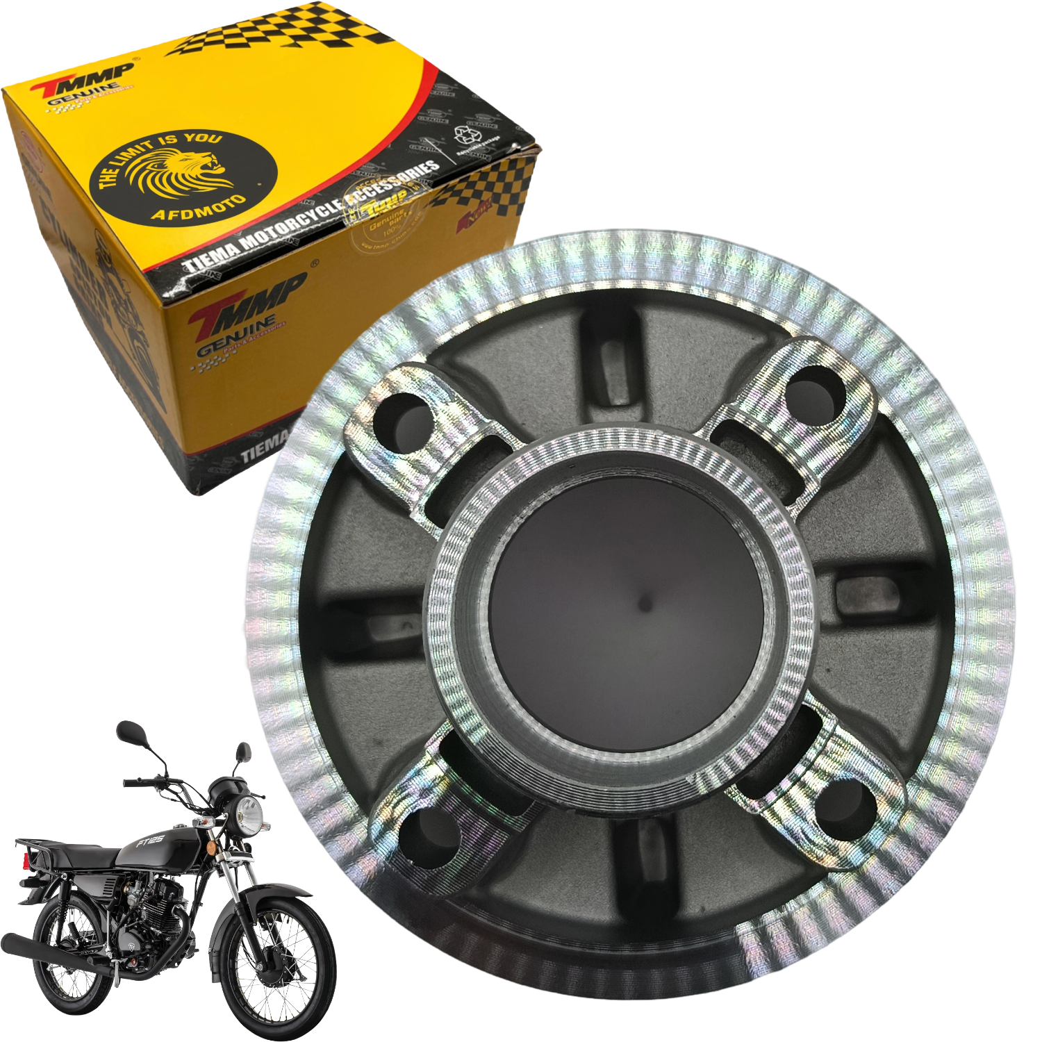 Porta sprocket compatible con motos FT125 Roja, FT125 Clásica, FT150S, FT150TS, DT150 Clásica, YBR125, DT125 y Forza125. Fabricado con acero de alta resistencia, garantiza una sujeción firme del sprocket trasero y una transmisión eficiente de potencia. Su diseño robusto asegura durabilidad y rendimiento confiable en todo tipo de condiciones. Ideal para reemplazar el componente original o para mantenimiento del sistema de transmisión.